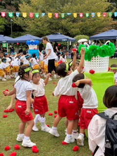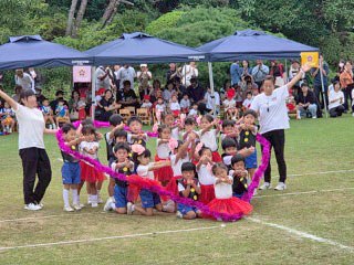 今年も運動会の時季がやってきました! お遊戯、とってもかわいかったですよ。 リレー・障害物競走・玉入れなどの競技では、みなベストを尽くして頑張ったね。
