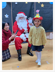 サンタさん登場に子どもたちは大騒ぎ。でも、プレゼントの大きな袋が見当たらないので心配する子がチラホラ。